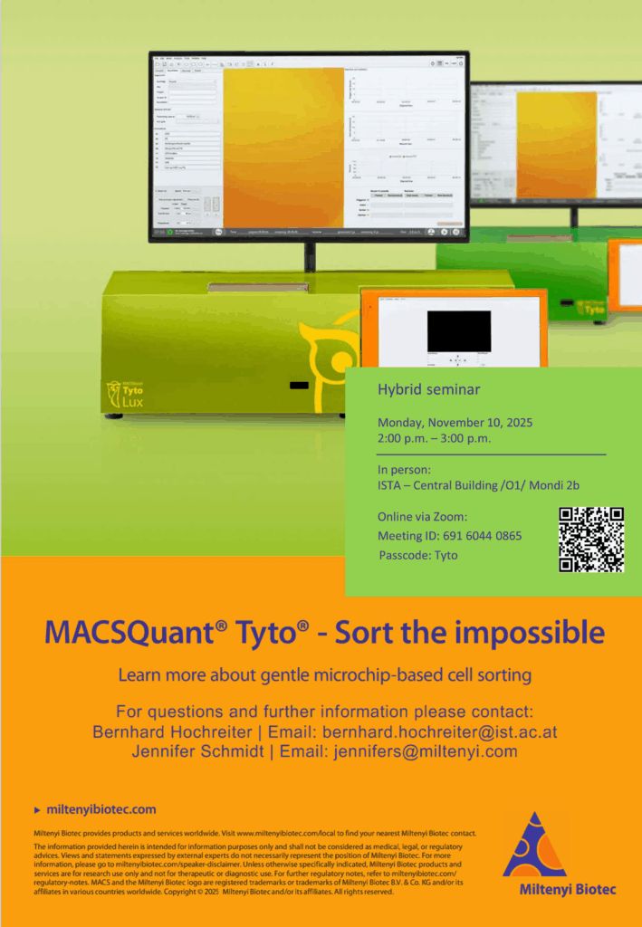 In the Week of November 10th, we will host a demo of the microfluidics sorterĀ MACSQuant Tyto from Miltenyi.